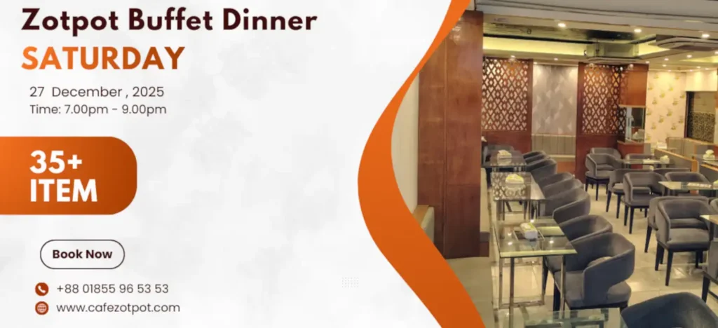 পরিবার ও বন্ধুদের সঙ্গে উপভোগ করার জন্য শহরের সেরা বুফে!! Cafe Zotpot নিয়ে আসছে এক বিশেষ বুফে নাইট, যেখানে থাকছে ৩৫+ আইটেমের সুস্বাদু ও লোভনীয় খাবারের আয়োজন।📅 তারিখ: ২৭ ডিসেম্বর ২০২৫ | ⏰ সময়: সন্ধ্যা ৭:০০টা থেকে রাত ৯:০০টা পর্যন্ত 🍽️✨ এই এক্সক্লুসিভ বুফে ইভেন্টটি সাজানো হয়েছে সব ধরনের খাবারপ্রেমীদের জন্য। এখানে একসাথে উপভোগ করতে […]